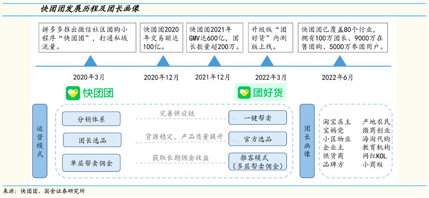經(jīng)典案例:根據(jù)快團(tuán)團(tuán)、國金證券研究所等綜合資訊表明,面對(duì)個(gè)體團(tuán)長團(tuán)購的運(yùn)營痛點(diǎn),2022年3月快團(tuán)團(tuán)升級(jí)版“團(tuán)好貨”內(nèi)測版上線,官方選品池提供穩(wěn)定貨源及供應(yīng)鏈。