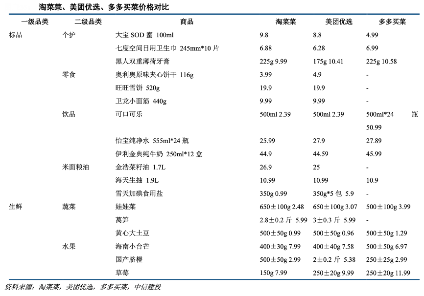 經典案例:根據淘菜菜、美團優選、多多買菜和中信建投等綜合資訊表明,在性價比基礎上,淘菜菜強調好品質和豐富性,希望為下沉市場帶來一日三餐的消費升級,而不是與線下消費場景進行簡單的價格競爭。