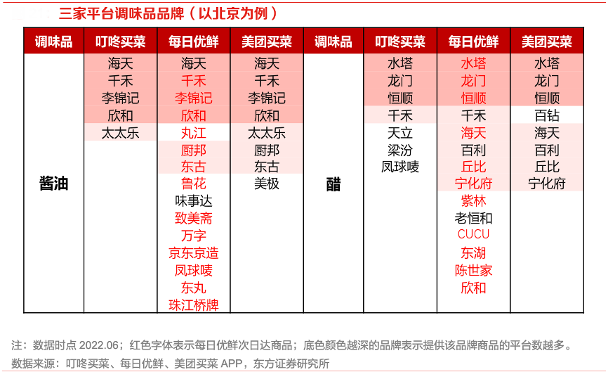經(jīng)典案例:根據(jù)叮咚買菜、每日優(yōu)鮮、美團買菜APP、東方證券研究所等綜合資訊表明,叮咚買菜和美團買菜的標品選品多集中在較知名的品牌,且同類型商品下品牌數(shù)有所控制。