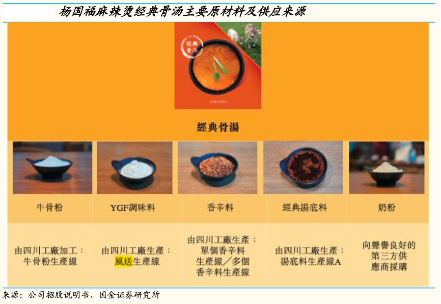 經典案例:根據公司招股說明書、國金證券研究所等綜合資訊表明,楊國福創新麻辣燙湯底配方,通過加入奶粉等營養成分,使麻辣燙更符合大眾口味,公司“經典骨湯”配方經典、有辨識度,由于“麻”、“辣”具有一定成癮性,湯底風味足、能形成一定口味粘性,是品牌擁有長生命周期的重要支撐。