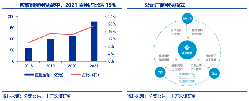 經(jīng)典案例:根據(jù)公司公告、申萬(wàn)宏源研究等綜合資訊表明,江蘇租賃公司2014 年引入法巴租賃作為戰(zhàn)略投資人,同時(shí)進(jìn)行業(yè)務(wù)合作,成立了新的業(yè)務(wù)部門(mén)廠融中心。公司依托法巴租賃在歐洲成熟的廠商租賃業(yè)務(wù)模式和全球廠商合作資源,以及公司在國(guó)內(nèi)持續(xù)經(jīng)營(yíng)的市場(chǎng)經(jīng)驗(yàn),以中小微型客戶為主要服務(wù)對(duì)象,積極開(kāi)拓廠商租賃業(yè)務(wù)。