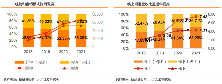 經典案例:根據招股說明書、天風證券研究所等綜合資訊表明,直銷方面,阿寬食品公司充分利用電商平臺優勢,通過線上直播帶貨等方式,實現電商自營業務銷售收入快速增長;加強與傳統線下 KA 賣場合作,促使直供銷售業務收入實現穩步增長;集中資源發展定制銷售業務,銷售規模不斷擴大。經銷方面,公司持續加大對重點線上經銷客戶的資源投入力度,不斷培育新客戶。