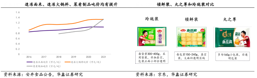 同時(shí)中高價(jià)產(chǎn)品正向拉動(dòng)企業(yè)利潤,公司速 凍米面、速凍火鍋料噸價(jià)已分別由 2016 年 0.85/0.92 萬元/噸提升至2021 年 1. 04/1.33 萬元/噸。