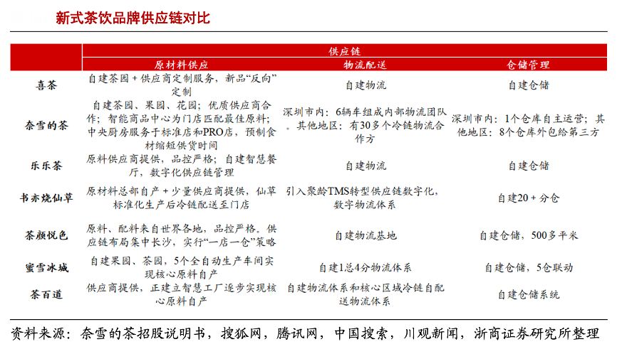 經典案例:根據奈雪的茶招股說明書、搜狐網、騰訊網、中國搜索、川觀新聞、浙商證券研究所等綜合資訊表明,以奈雪的茶為例,根據《“數字化進階”-2020 新式茶飲白皮書》及奈雪的茶招股書,公司自建茶園、果園、花園來實現食材的一致性,同時降低原材料成本;配置中央廚房,從而免去大部分門店的大面積后廚,降低租金成本同時實現了烘焙產品的規?;a。