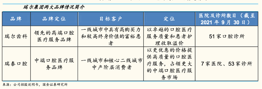 經(jīng)典案例:根據(jù)公司招股說明書、國金證券研究所等綜合資訊表明,瑞爾集團(tuán)成立于 1999 年,是中國最大的高端民營口腔醫(yī)療服務(wù)提供商,公司業(yè)務(wù)遍布全國,同時(shí)運(yùn)營瑞爾齒科(領(lǐng)先的高端品牌)和瑞泰口腔 (快速成長的大眾品牌之一)。