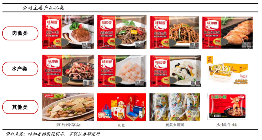 經典案例:根據味知香招股說明書、萬聯證券研究所等綜合資訊表明,味知香現有8大產品線,包含牛肉類、羊肉類、豬肉類、家禽類、水產類、湯煲類、素菜類、火鍋類;產品品類超過 300 種,覆蓋肉禽類、水產類及其他類。此外,公司建立了柔性化生產線,能夠根據下游需求靈活地生產多種產品。