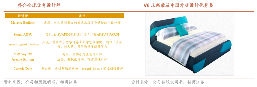 經(jīng)典案例:根據(jù)公司招股說明書、招商證券等綜合資訊表明,慕思公司于 2007 年就開啟了全球人才整合戰(zhàn)略,引入法國籍知名設(shè)計(jì) 師 Maurice 作為首席設(shè)計(jì)師,后又接連引入 Sezgin AKSU、James 等具有豐富經(jīng)驗(yàn)的海外設(shè)計(jì)師,組建了領(lǐng)先行業(yè)的慕思設(shè)計(jì)師團(tuán)隊(duì),以歐洲設(shè)計(jì)理念,將人體工程學(xué)和睡眠環(huán)境學(xué)融入寢具設(shè)計(jì)。