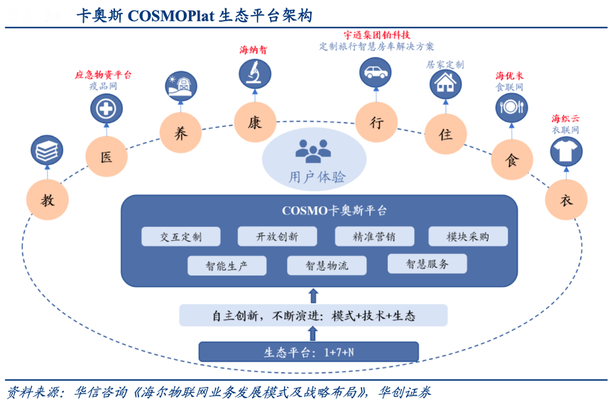 經典案例:根據華信咨詢《海爾物聯網業務發展模式及戰略布局》、華創證券等綜合資訊表明,卡奧斯(COSMOPlat)是海爾基于“人單合一”和“大規模定制”模式打造的工業互聯網平臺,致力為不同企業或用戶提供基于場景生態的數字化解決方案。作為資源集成對接平臺,卡奧斯能夠幫助企業促進材料供應、設計方案、產品銷售等上下游不同領域的深度合作,有效解決供應鏈中斷、需求變化與質量追溯等問題,提升生產效率與定制化能力。