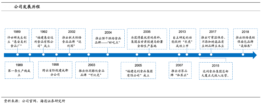 經典案例:根據公司官網、海通證券研究所等綜合資訊表明,達利食品先后推出超級大單品“達利園”,薯片品牌“可比克”和高端餅干品牌 “好吃點”,奠定了公司在食品行業的領先地位。2017年其開始布局家庭消費板塊,推出高品質豆奶品牌“豆本豆”和短保面包“美焙辰”。