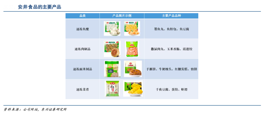 經典案例:根據公司網站、東興證券研究所等綜合資訊表明,2017年安井食品公司主動調整產品策略為“主食發力,均衡發展”,在原有發面類產品的基礎上推出餡餅、燒賣、小籠包等主食類新品,主食類面米制品快速起量。2018年公司提出要餐飲發力,成立“凍品先生”子品牌。2021年公司成立“安井小廚”,再次從 B 端切入到預制菜領域。