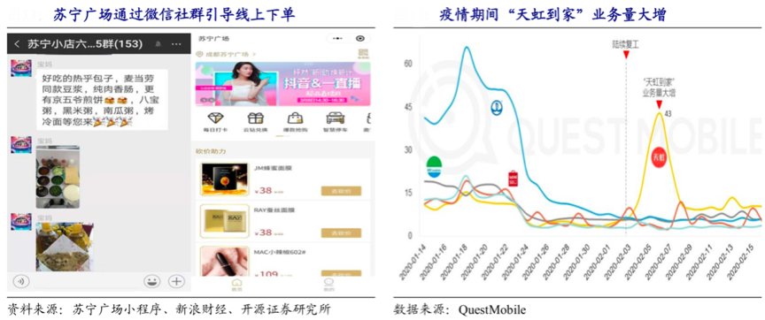 傳統(tǒng)企業(yè)的數(shù)字化技術(shù)轉(zhuǎn)型升級(jí)快速推進(jìn),全渠道營(yíng)銷策劃成為企業(yè)的必選項(xiàng),數(shù)字品牌策劃成為傳統(tǒng)企業(yè)新零售策劃運(yùn)營(yíng)的“新亮點(diǎn)”。據(jù)蘇寧廣場(chǎng)小程序、新浪財(cái)經(jīng)、開源證券研究所等綜合資訊表明,蘇寧引導(dǎo)旗下的蘇寧廣場(chǎng)分別建立了自己的營(yíng)銷社群,通過掃碼進(jìn)群、線上點(diǎn)單、物流配送的方式,讓消費(fèi)者足不出戶即可享受廣場(chǎng)內(nèi)的產(chǎn)品和服務(wù); 據(jù)QuestMobile等綜合資訊表明,天虹百貨推出了“百貨到家”服務(wù),消費(fèi)者可以選擇“天虹”小程序或者APP的專柜發(fā)貨服務(wù),下單配送到家;越來越多的商家通過直播電商的方式進(jìn)行營(yíng)銷,根據(jù)淘寶數(shù)據(jù),2月份新開淘寶直播商家環(huán)比上漲719%。此外,2月份淘寶直播商家獲得的訂單總量,平均每周都以20%的速度增長(zhǎng)。