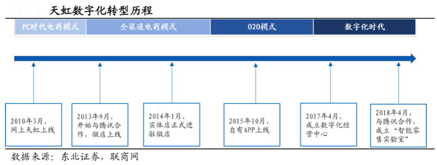 經典案例:據東北證券、聯商網等綜合資訊表明,從天虹數字化轉型歷程我們可以看出,百貨商場的數字新零售模式策劃,線上線下一體化的數字化經營策劃,其需要與時俱進,以提供優質的“用戶品牌消費體驗”為指引,推進實體店進駐微店,建立自有品牌APP,成立專門的組織“數字化經營中心”,與大平臺深度合作,步步為贏,充分亮化品牌形象,落地數字品牌營銷策劃。