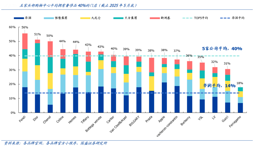 經典案例:根據各品牌官網、各品牌官方小程序、公司官網、國盛證券研究所等綜合資訊表明,華潤萬象生活公司在重奢賽道已經具備相當大的規模基礎和品牌基礎,是公司高端定位與差異化競爭實現的方式。截止 2024 年底,萬象城在營重奢購物中心 14 座,已經形成一定的連鎖規模。