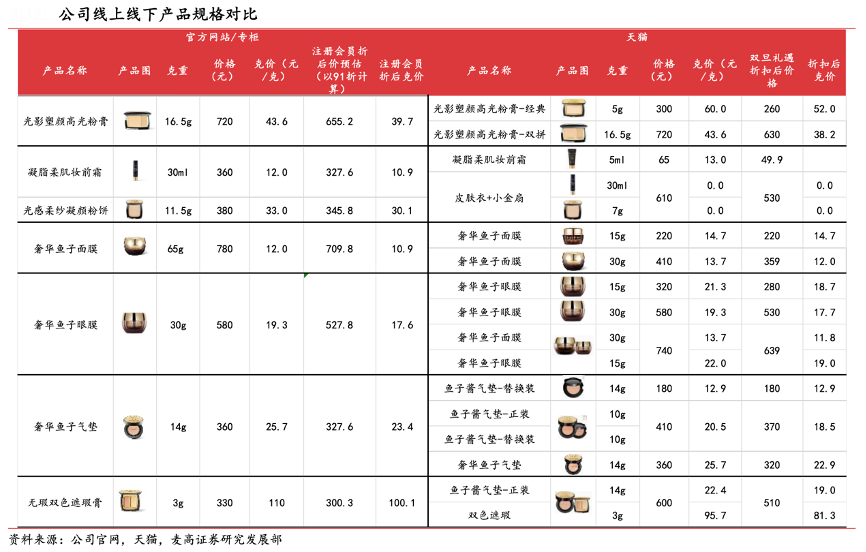 經(jīng)典案例:根據(jù)公司官網(wǎng)、天貓、麥高證券研究發(fā)展部等綜合資訊表明,毛戈平目前公司線上收入仍在快速提升狀態(tài),蓄水池較大。其線下專柜渠道和線上渠道消費(fèi)群體畫像存在較大交叉可以有效豐富客群畫像,擴(kuò)大會員池。